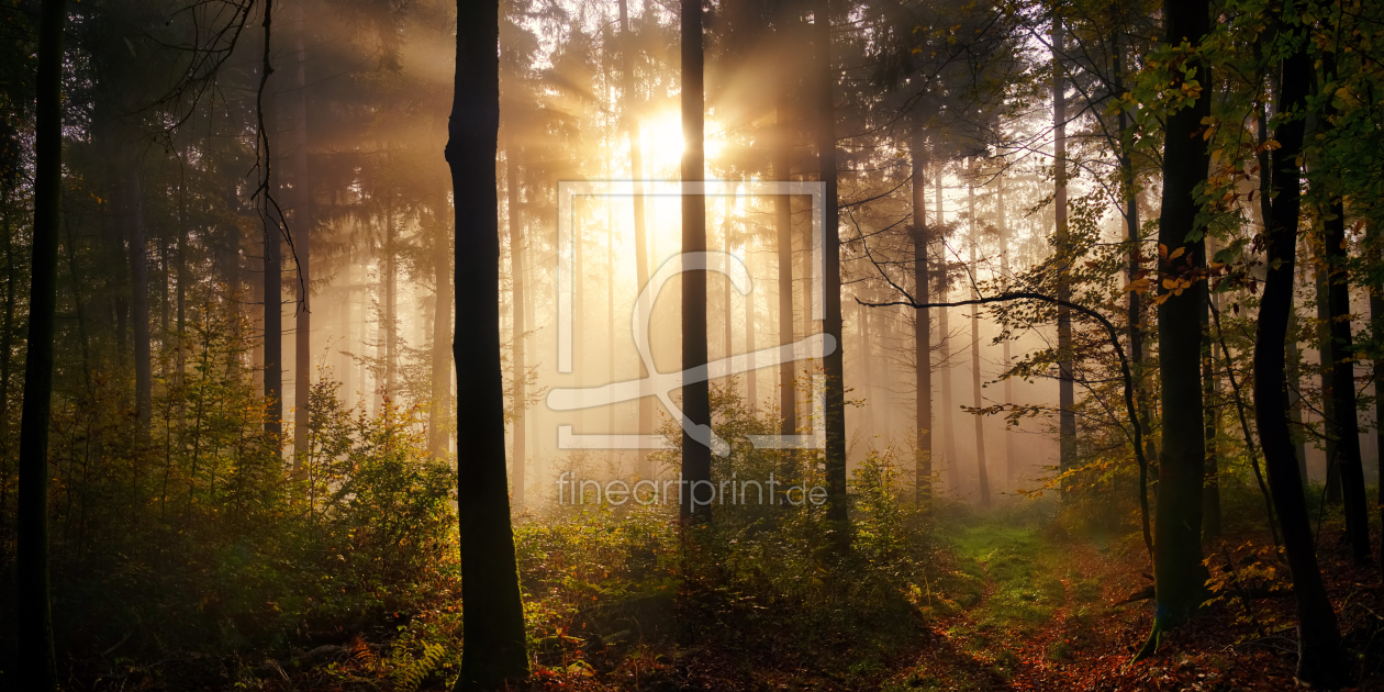 Bezaubernde Stimmung mit Sonnenstrahlen im Wald