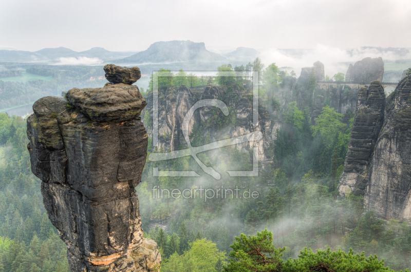 Blick über den Wehlgrund zur Bastei bei Nebel