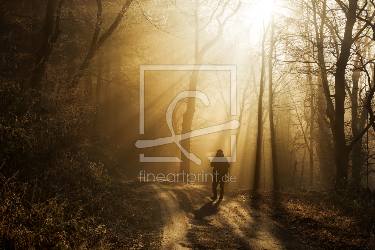 Bild-Nr.: 12940169 Spaziergang durch nebligen Wald mit goldener Sonne erstellt von Smileus